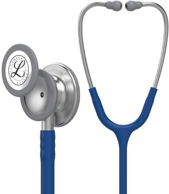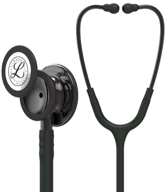 • Estetoscópio preto e cromado com marca Litmann Classic II SE visível